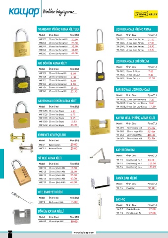 YM-1025 25 mm Gri Asma Kilit 5.00 YM-1050L 50 mm Gri Uzun 16.30