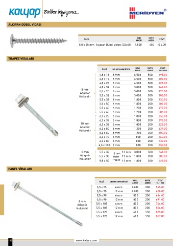 5,0 x 45 mm Alçıpan Dübel Vidası (22x45) 4.500 450 104.00