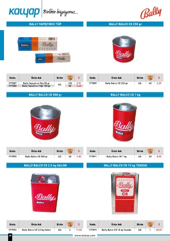 177887 Bally Yapıştırıcı Tüp 50 gr AD. 100 0.91 177889 Bally Balco C8 250 gr AD. 40 2.20
