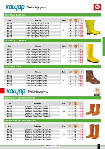 000535 Gezer Çizme Sarı Kısa Konç No: 42 ÇİFT 14 14 46.50